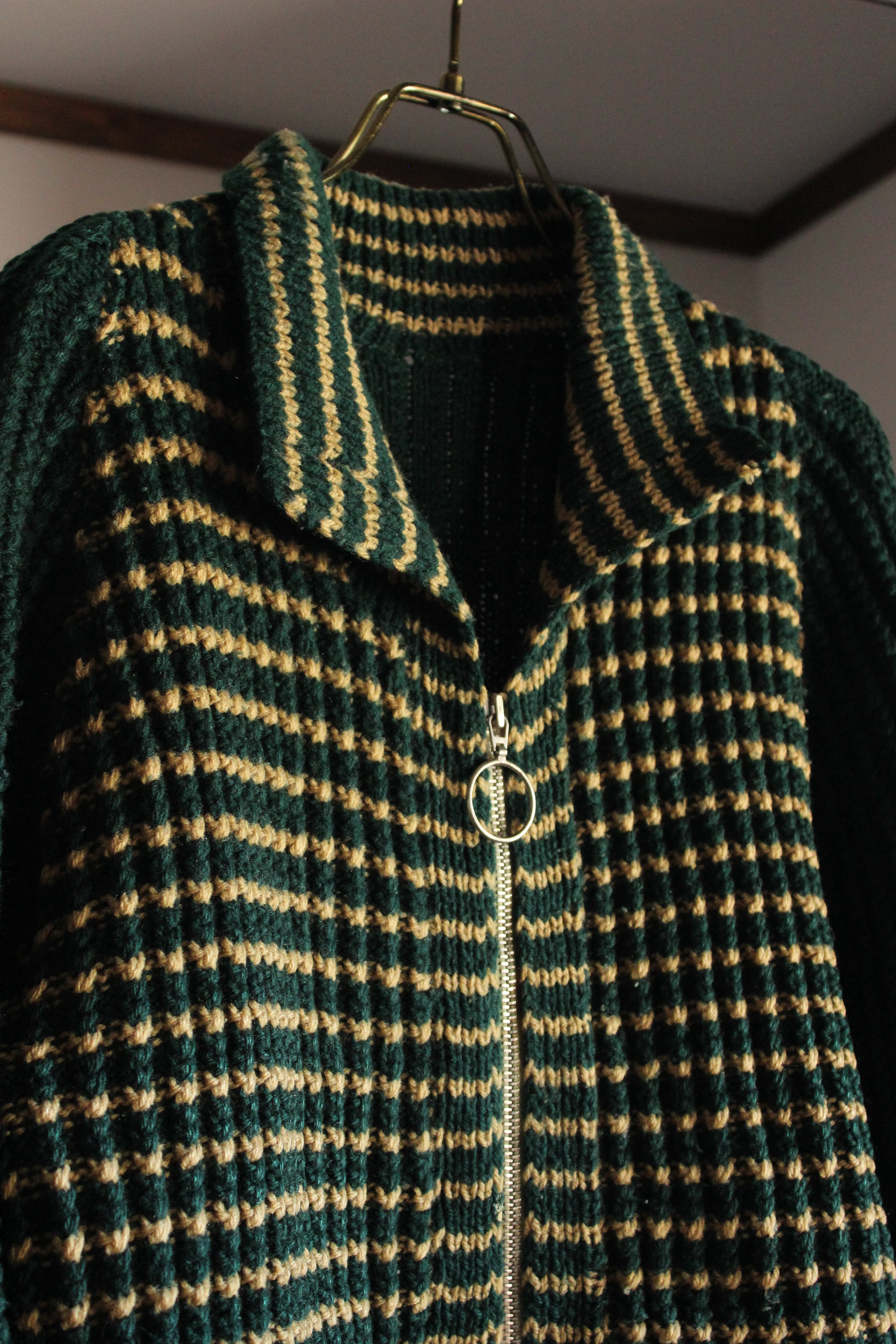珍しいジップアップのボーダーニット、